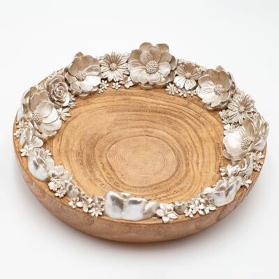 ΔΙΑΚΟΣΜΗΤΙΚΗ ΠΙΑΤΕΛΑ ΛΟΥΛΟΥΔΙΑ ΠΟΛΥΡΕΖΙΝ-ΞΥΛΟ ΦΥΣΙΚΟ-ΑΣΗΜΙ 29.3×29.3x7cm
